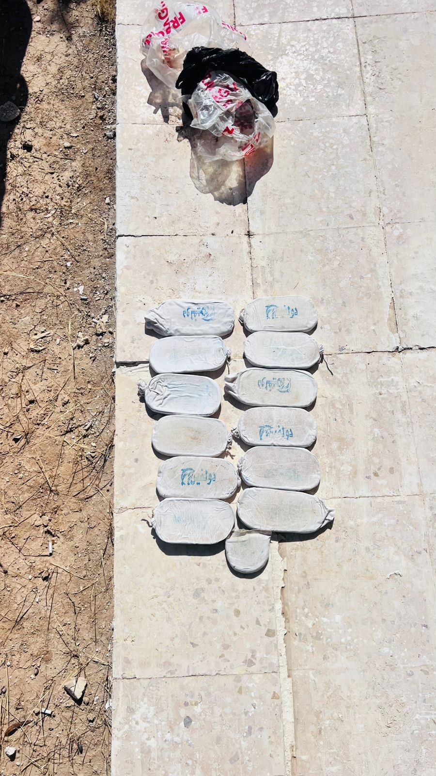 Meanwhile, in Aqaba Governorate, following close surveillance of a drug dealer confirmed to be in possession of a large quantity of narcotics, he was apprehended, and during questioning, revealed the hiding place of the drugs in a rugged rocky area. A subsequent search uncovered 36 slabs of hashish concealed at the site.