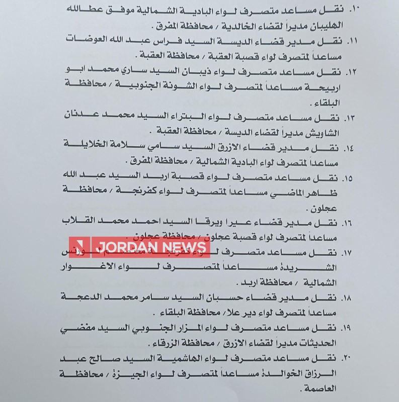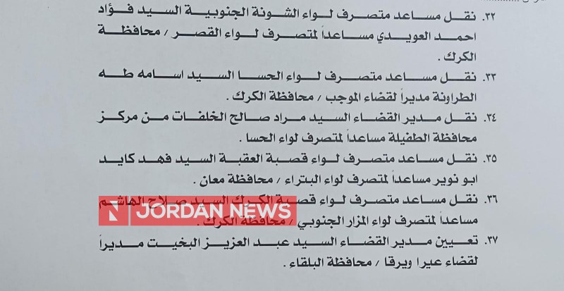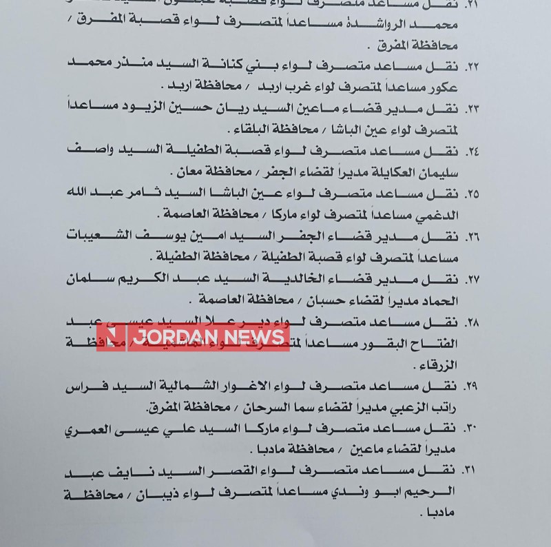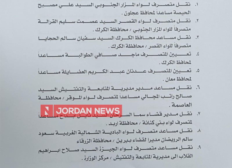 Minister of Interior Mazen Al-Faraya on Wednesday carried out a wide-ranging administrative reshuffle that included governors, deputy governors, and district directors.اضافة اعلان