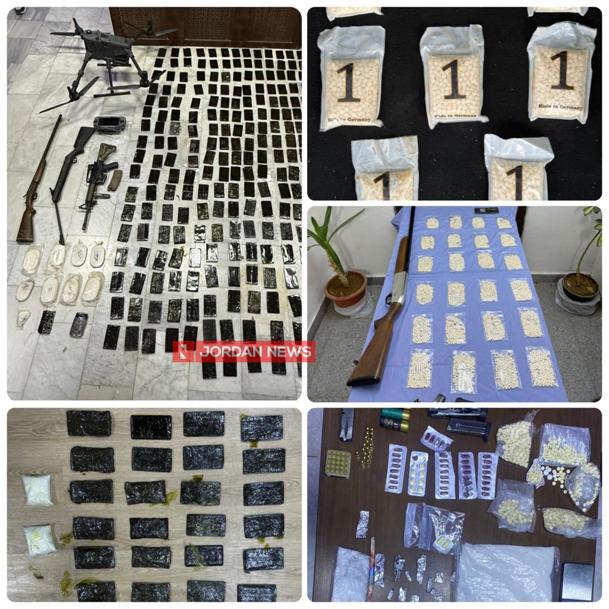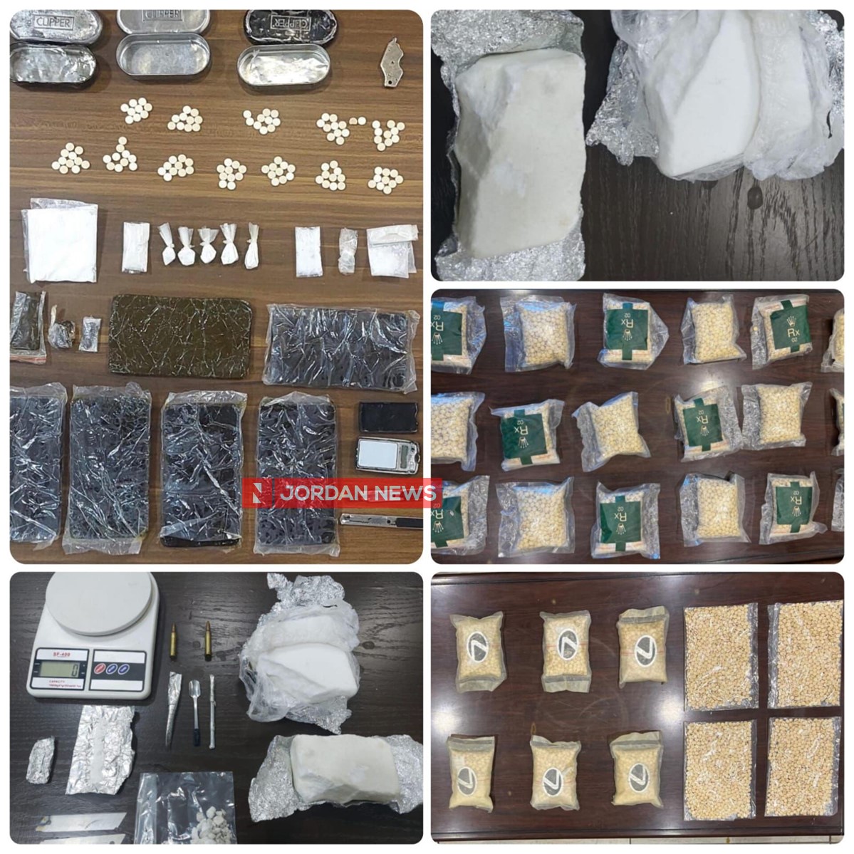 In another case in Madaba Governorate, after gathering information about five individuals selling cocaine, their identities and locations were determined, they were raided and arrested, and 1 kilogram of cocaine was seized. Twelve slabs of hashish were seized south of the capital following the raid of a dealer there. Additionally, three drug dealers were raided east of the capital, with 14,000 narcotic pills seized, and 24 slabs of hashish were seized north of the capital from a dealer after his arrest.