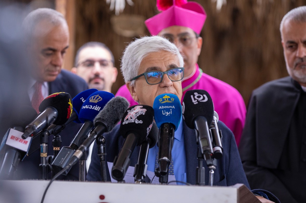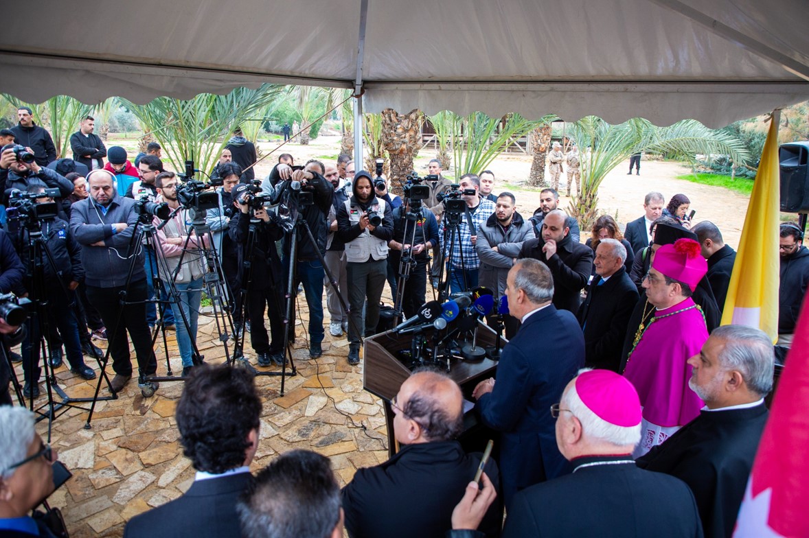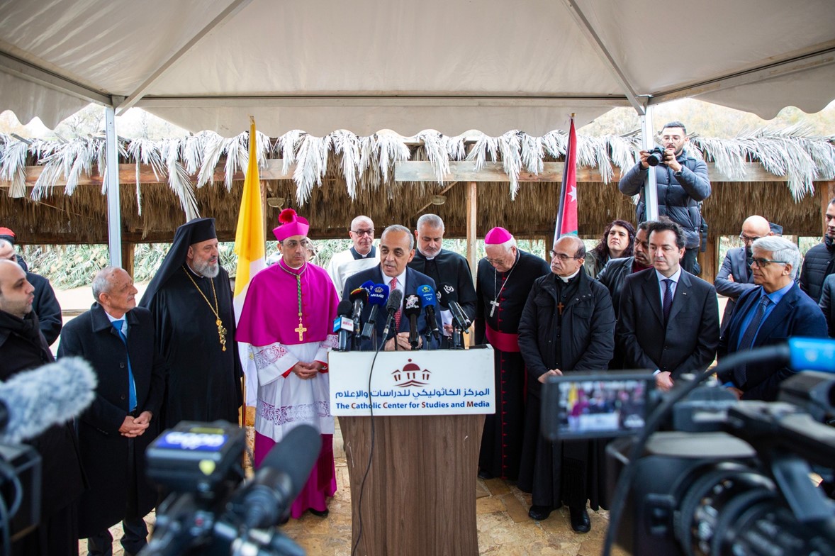 Prior to the Mass, the Catholic Center for Studies and Media held a press conference at the Baptism Site. Its Director General, Fr. Rifat Bader, welcomed representatives of local and international media outlets, news agencies, and visiting delegations of bishops and journalists from the Philippines, Italy, and the Vatican.