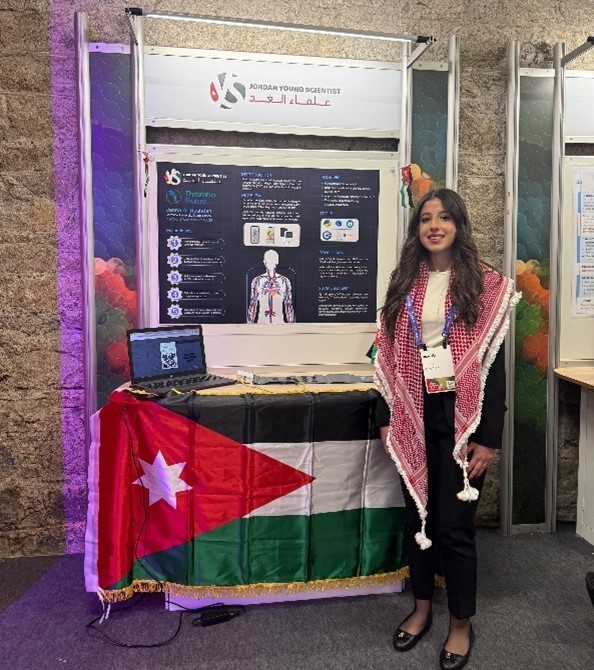 The winning team of the Jordan Young Scientist National Exhibition 2025 represented Jordan at the Young Scientist and Technology Exhibition (YSTE) in Dublin, Ireland, with their project “Thrombo Guard – DVT Detection System.” The project was presented by student Jenna Alrashdan, supervised by Ms. Doa’a Tashtoush, from Al-Yarmouk University Model School in Irbid.